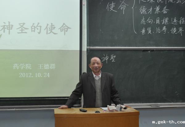 全国优秀教师、安徽中医学院药学院王德群教授以《神圣的使命》为题,从使命、困惑、成才、治学、境界等方面,与大家分享了他从教多年的感悟和成功经验,鼓励青年教师要打足基础、勤于思索、追求真理、由博返约、勇于创新。