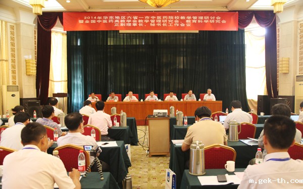 为了进一步加强华东地区中医药院校教务部门之间的交流与合作,更好地推动中医药教育教学改革,由全国中医药高等教育学会教学管理研究会、全国中医药高等教育学会教育科学研究会主办、山东中医药大学承办的“2014年华东地区六省一市中医药院校教学管理研讨会”于2014年8月8-10日在济南市召开。国家中医药管理局人教司副司长吴厚新,综合协调处副处长周景玉,全国中医药高教学会秘书长、全国中医药高教学会教育科学研究会理事长、北京中医药大学副校长翟双庆,全国中医药高教学会教学管理研究会理事长、上海中医药大学副校长胡鸿毅,全国中医药高教学会教学管理研究会副理事长、天津中医药大学副校长周桂桐,山东中医药大学校长欧阳兵,副校长高树中出席会议。我校教务处处长储全根,副处长王鹏、颜贵明及教务处相关科室负责人参加了本次会议。