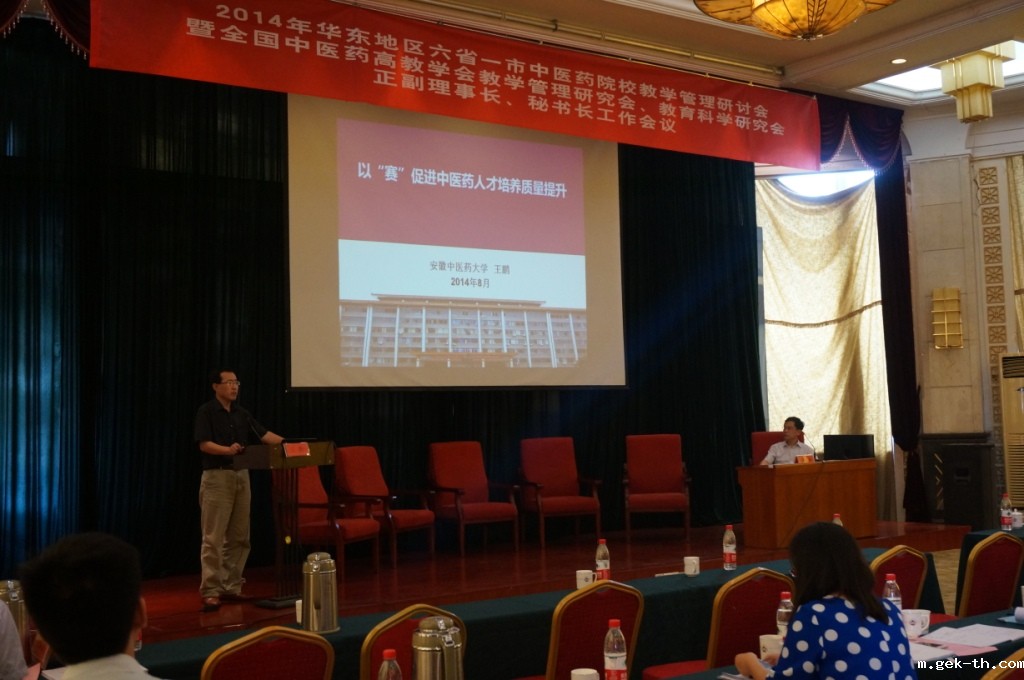 本次会议围绕中医药人才培养类型与教学策略研究、中医文化教育教学探讨等议题开展讨论。上海中医药大学副校长胡鸿毅教授和山东中医药大学刘更生教授分别就“慕课背景下的中医药课程设计”和“谈谈以文化人”作专题报告。我校教务处副处长王鹏就“以赛促进中医药人才培养质量提升”作大会交流。