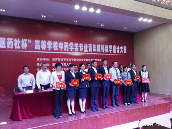 10月11-12日,教育部高等学校中药学类专业教学指导委员会主办的“第一届高等学校中药学类专业青年教师教学设计大赛”在浙江中医药大学举办。我校副校长彭代银,高等教育研究所所长许钒,药学院院长戴敏、副院长桂双英带领王举涛、韩岚、彭灿三位青年教师参加比赛,与来自全国41所院校的113位参赛教师同场竞技。