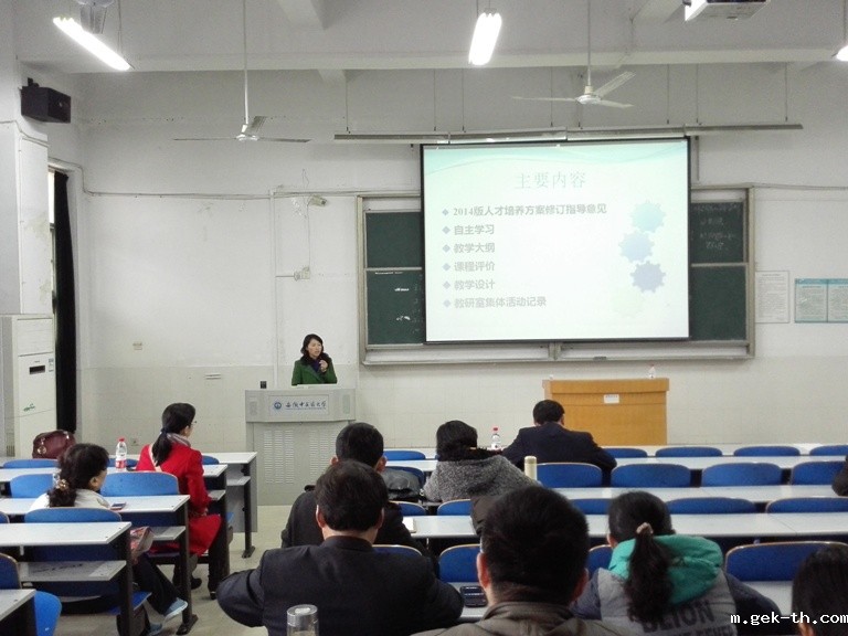 药学院副院长桂双英结合观摩兄弟院校专业认证的经验和亲身体会,从中药学专业人才培养方案的修订、自主学习环节的实施、教学大纲、课程评价、教学设计和教研室集体活动记录等环节,对中药学专业认证的相关要求和注意事项进行了详细介绍。
