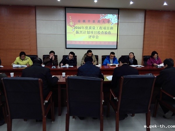 12月28日上午,学校召开了2016年质量工程项目和振兴计划部分项目检查与验收工作评审会。省教育厅高教处、合肥工业大学、安徽大学、安徽医科大学、安徽建筑大学、安徽农业大学、合肥学院和学校部分教学督导和教授等20多位专家对127个质量工程和振兴计划项目以及181个教研项目进行检查与验收。副校长彭代银、教务处和高教所负责人参加了会议。