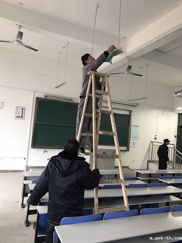 首先对公共教学楼教室逐一进行检查,在总务处和物业的支持下,清除教室内遗留的装饰物及卫生死角,为下一步教室内文化建设打好基础。其次在每间教室门口安装了教室使用信息牌并将教室课表发布在信息牌内,方便师生查询和使用教室,同时在每间教室休息室内安装仪容镜,方便师生上课前后整理仪容。