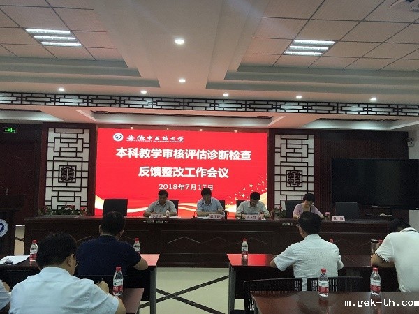 为推进本科教学工作审核评估评建工作,落实本科教学工作审核评估诊断检查专家的反馈整改任务,做好预评估各项准备工作,学校于7月17日下午在惟新楼三楼380室(药学院沁馨堂)召开了审核评估反馈整改工作会议。会议由评建办主任彭代银校长主持。校党委副书记张永群、科学院专职副院长李泽庚、副校长戴敏,全体副处以上干部,第一、第二附属医院党政负责人、分管教学工作副院长、临床教学部负责人,评建办全体人员参加了会议。