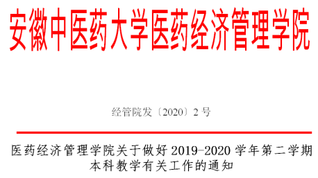 鉴于新型冠状病毒感染的肺炎疫情防控形势严峻,根据学校的统一部署,在保障学院广大师生身体健康和生命安全基础上,不折不扣执行学校相关通知要求,医药经济管理学院第一时间建立线上教学工作领导小组,发布线上教学通知和详细实施方案。学院教学办高度重视在线教学工作,将在线教学辅导材料分发全部课程教师,并组织辅导员通知各班级成立在线教学课程群,所有教师与授课班级进行对接,在线教学基础工作有序开展。