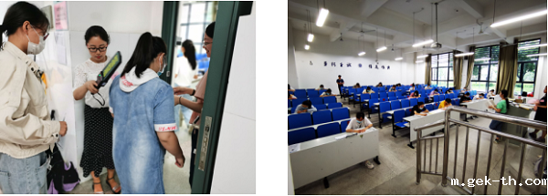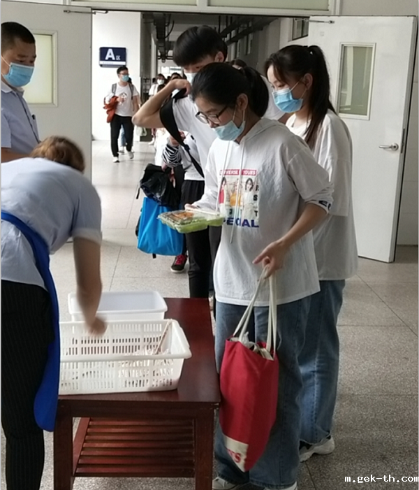 二、强化疫情防控要求,切实保障考生安全。要求考生携带身份证、准考证、健康承诺书和14天内行程查询等,由指定通道测量体温后,按指示标牌沿指定路线和入口进入考场。合理划分入检区、测温区、临时观察区、考生通道,适时对考场进行全面消毒,确保考场内空气畅通,做好考生之间保持安全距离等工作。为师生配备充足的防疫物资,安排多名医务人员为考生提供防疫及医疗保障。同时,邀请属地疫情防控部门工作人员担任副主考,负责考点疫情防控及突发公共卫生事件应急处置工作。坚持以生为本,安全第一,要求考生在考试间歇期间不得离开考场所在楼层,考试结束后分时段离开考场。学校配送中餐至考场,考生走出考场即可方便就餐,并安排指定地点作为考生就餐和休息室。
