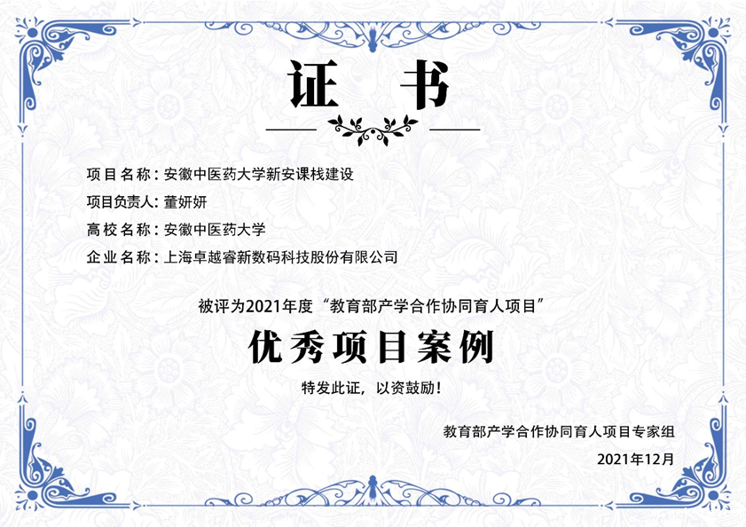 2021年12月8日,教育部高等教育司公布了首批产学合作协同育人项目优秀项目案例名单,我校作为安徽省唯一入围单位荣获“教育部产学合作协同育人项目”优秀项目案例。
