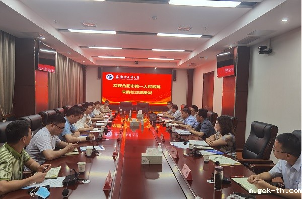 6月27日下午,合肥市第一人民医院党委书记吴冬雷、副院长宁仁德一行9人来校,围绕校院合作进行座谈交流。