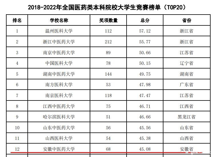 3月22日,中国高等教育学会高校竞赛评估与管理体系研究专家工作组发布《2022全国普通高校大学生竞赛分析报告》(以下简称《分析报告》)。我校在《2018-2022年全国医药类本科院校大学生竞赛榜单(TOP20)》中位列第12位,较上一年度排名提升3位。