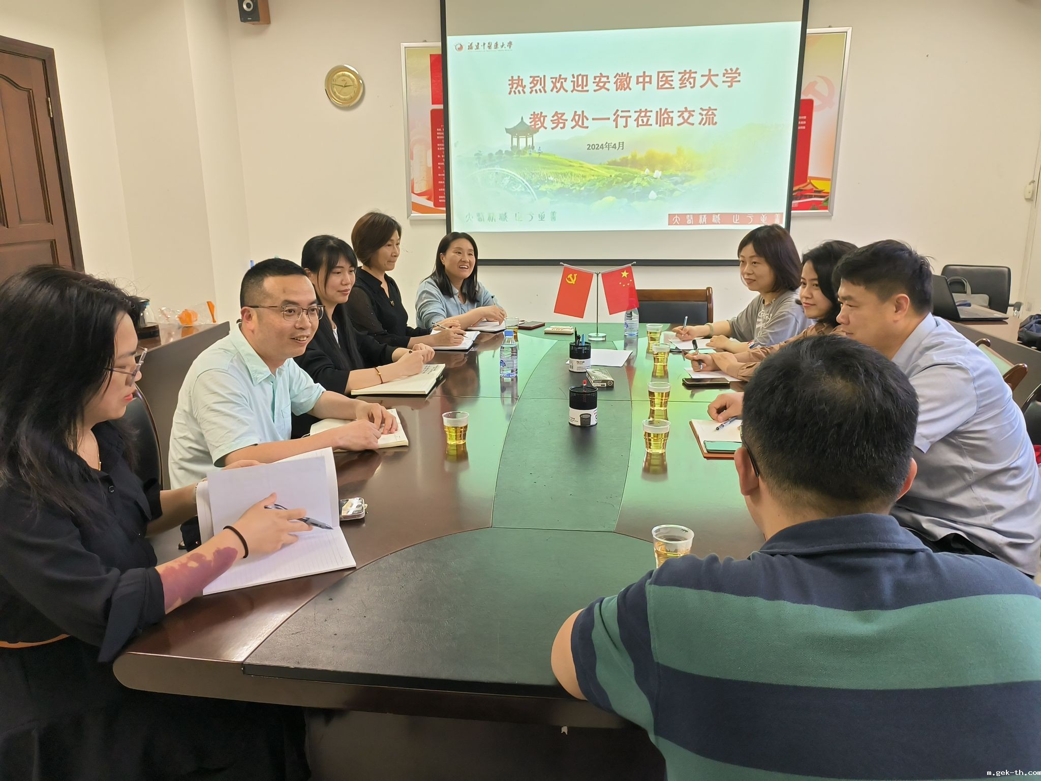 2024年4月15日下午,教务处副处长张晓军、张艳春一行赴福建中医药大学教务处开展本科教学工作调研交流,分别就实践教学、考务工作和三校学生互派交流等方面的做法和经验进行深入交流研讨。综合科、考务科、实习管理科参加调研。