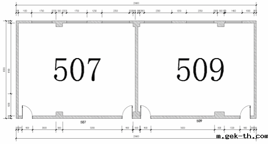 (梅山路校区新安楼507、509平面图,中间打通合并为一间)