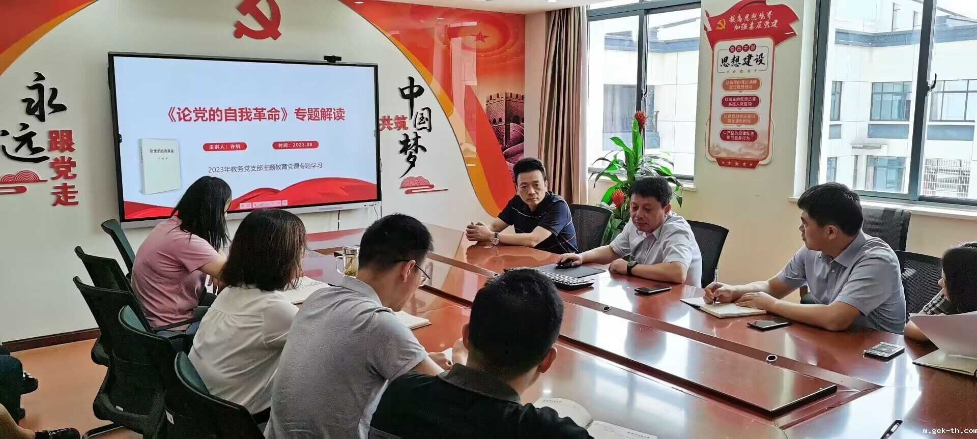 为深入推进学习贯彻习近平新时代中国特色社会主义思想主题教育,8月21日中午,学校党委常委、副校长许钒以《〈论党的自我革命〉专题解读》为题,为taptap游戏下载最新版讲授专题党课。党支部书记、教务处处长王茎主持会议,支部全体党员参加党课学习。